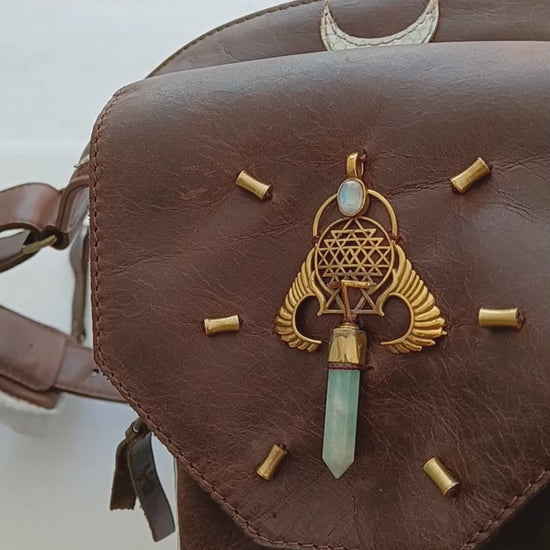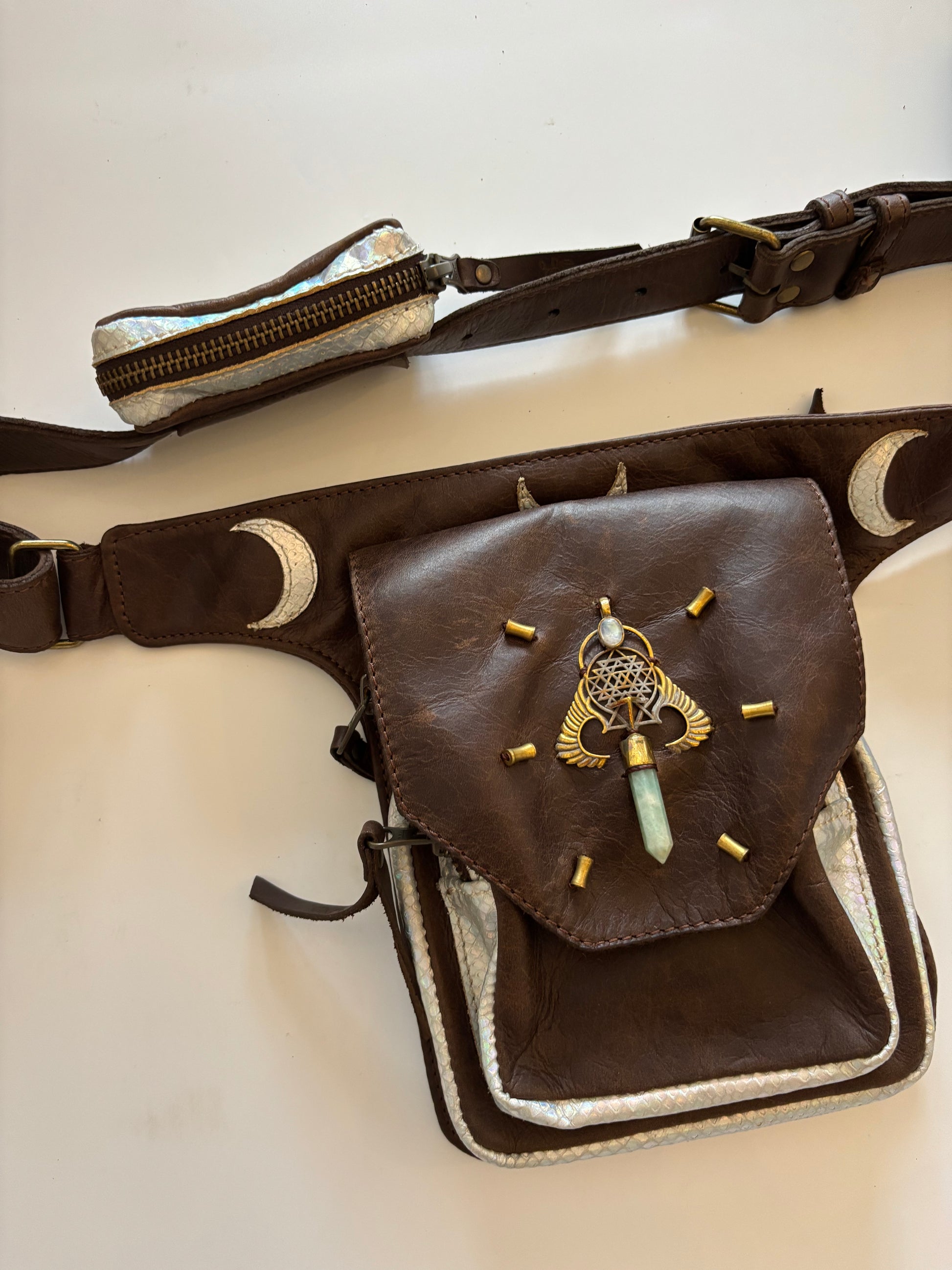 Kamala Leather Pocket Belt -Amazonite Point with wings