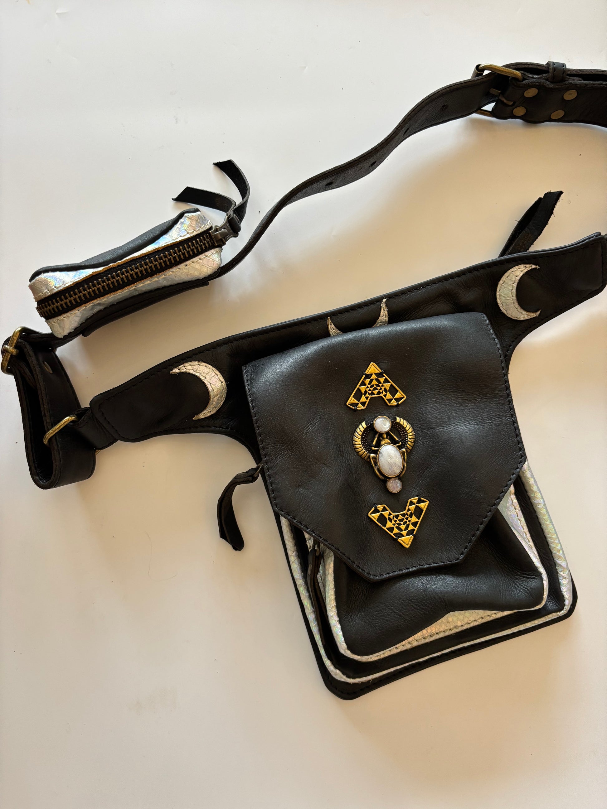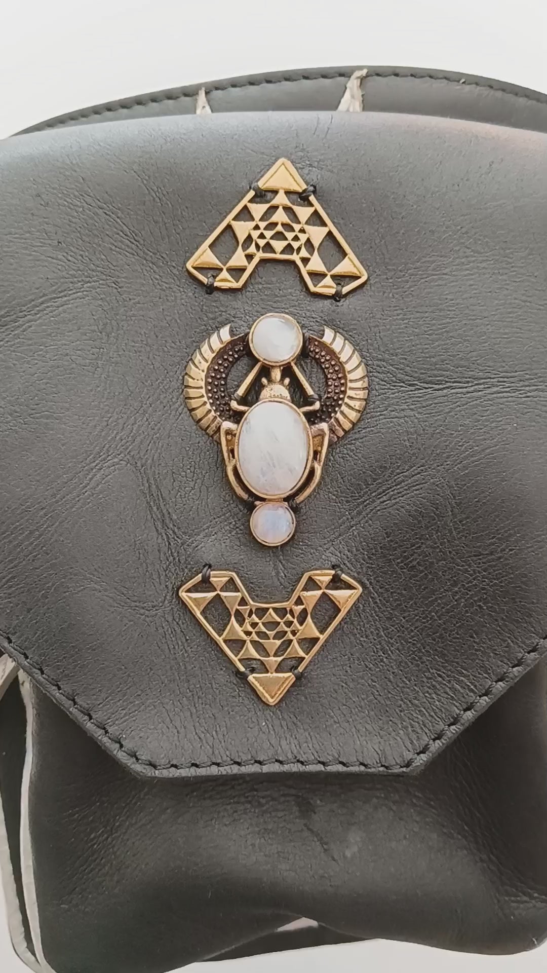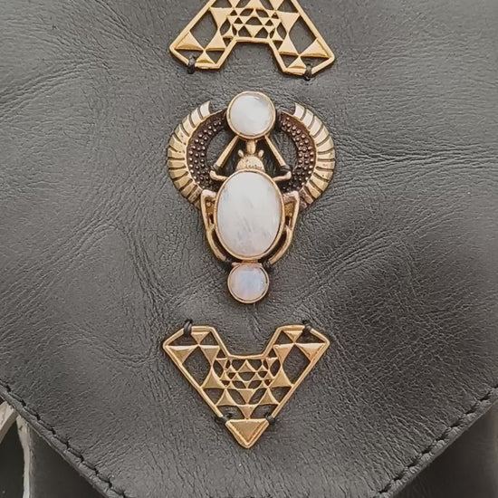 Kamala Leather Pocket Belt - Moonstone Scarab and Sri Yantra detail