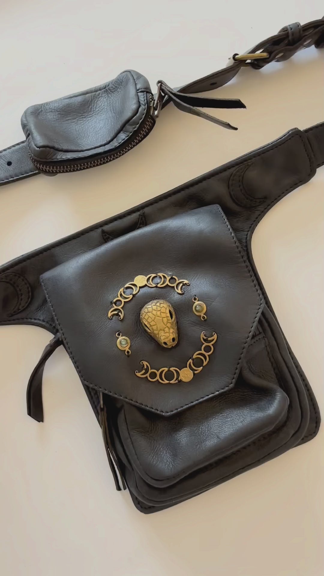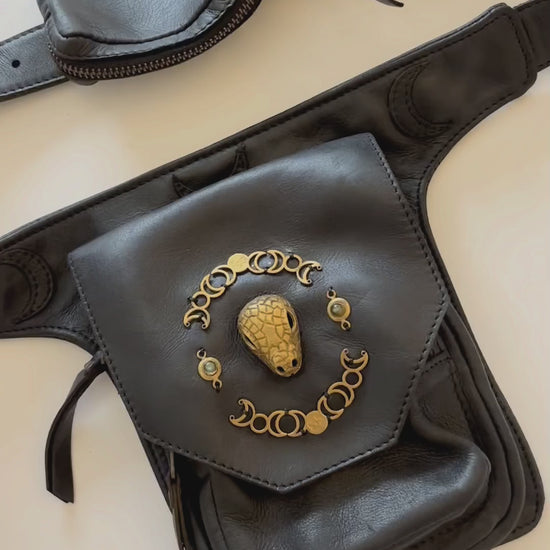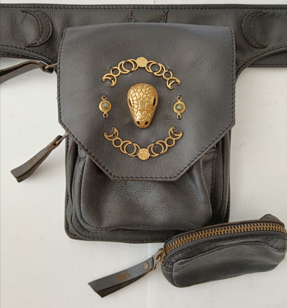 Kamala Leather Pocket Belt - Snake moonphase