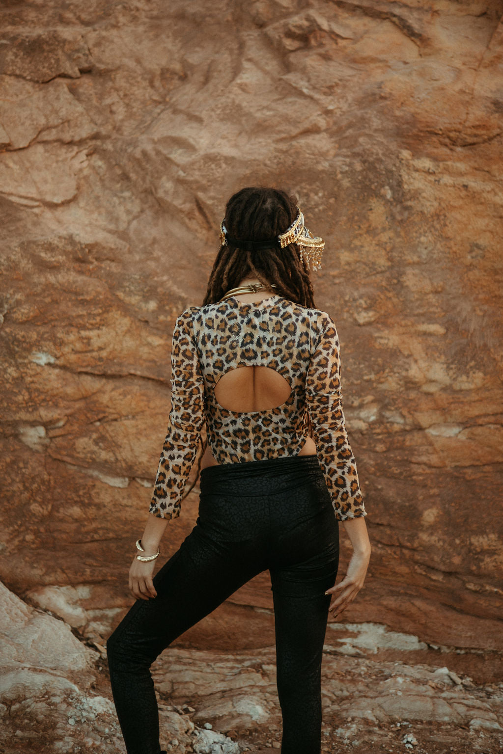 The Sphinx Suit has a high neckline and long sleeves. Made out a light mesh animal print. High rise leg and back cut out detail makes this a sexy must have for your wardrobe.